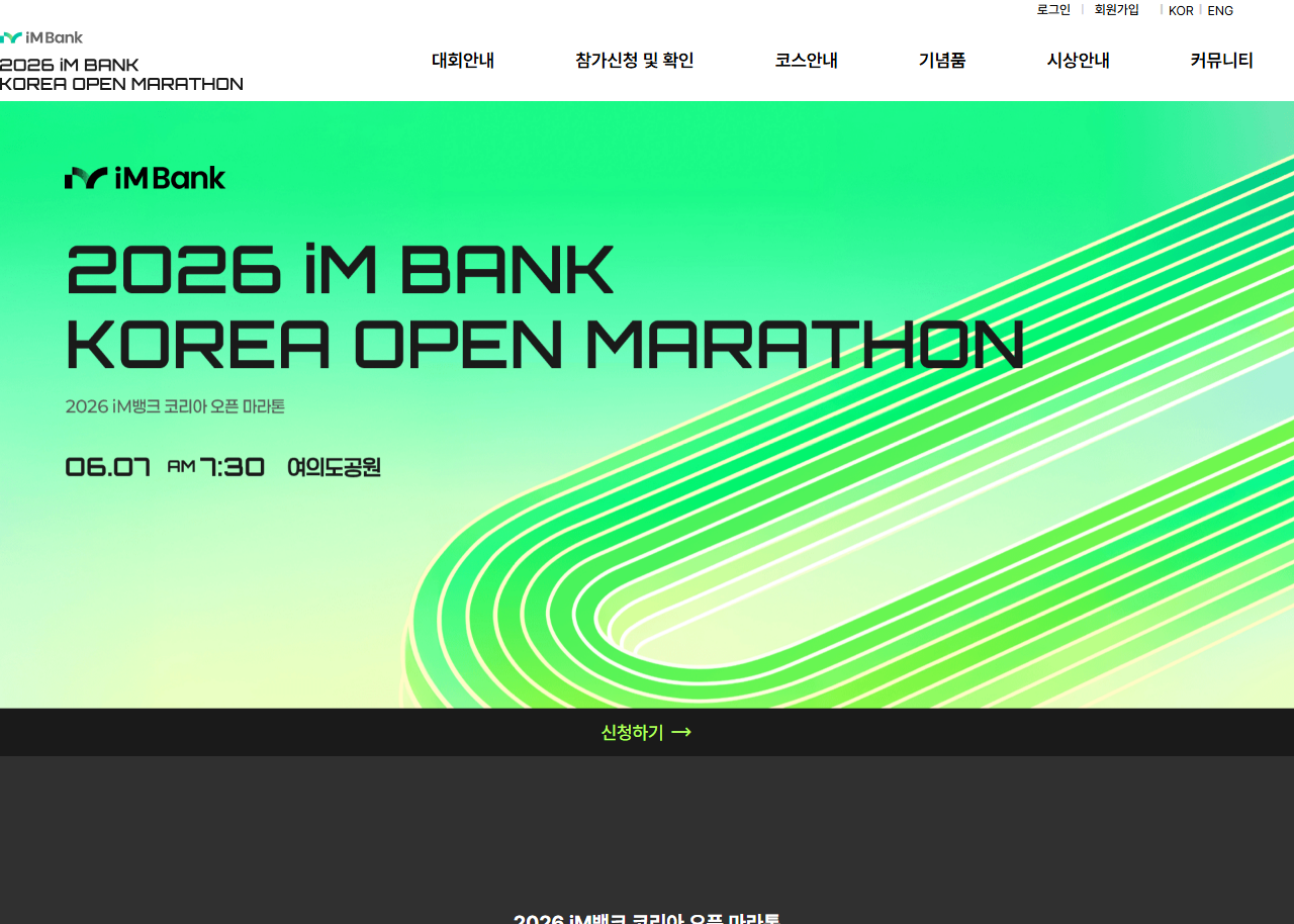 2026 iM뱅크 코리아오픈마라톤이 6월 7일 여의도공원에서 열립니다. 하프·10km·5km 코스와 참가비, iM뱅크 앱 추첨 방식(신청 5/3 마감, 당첨 5/6 발표), 프로스펙스 하네스 기념품, 주차와 대중교통까지 공식 홈페이지 기준으로 정리했습니다.