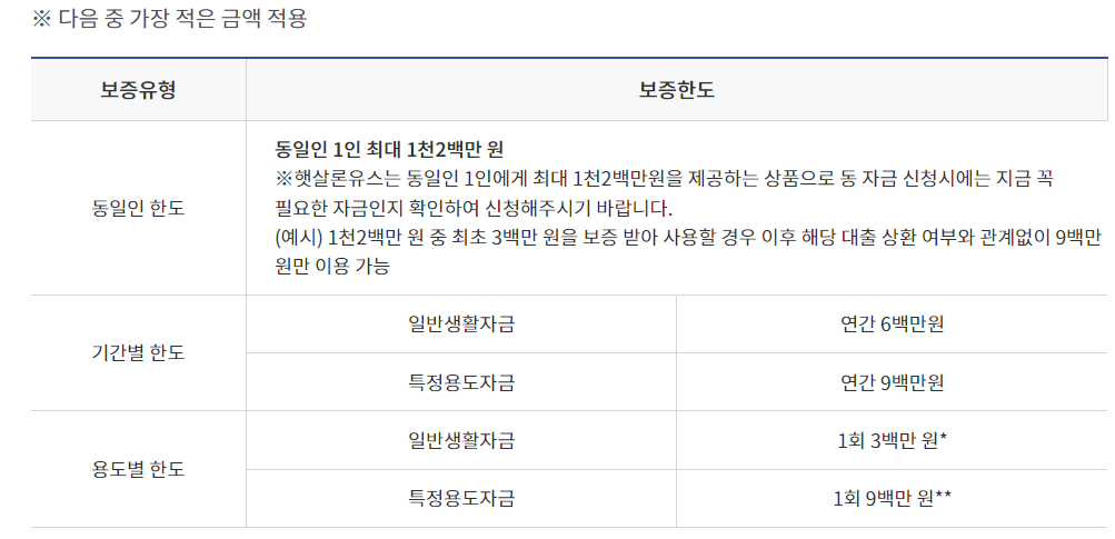 3. 햇살론유스 대출금리 및 보증한도
