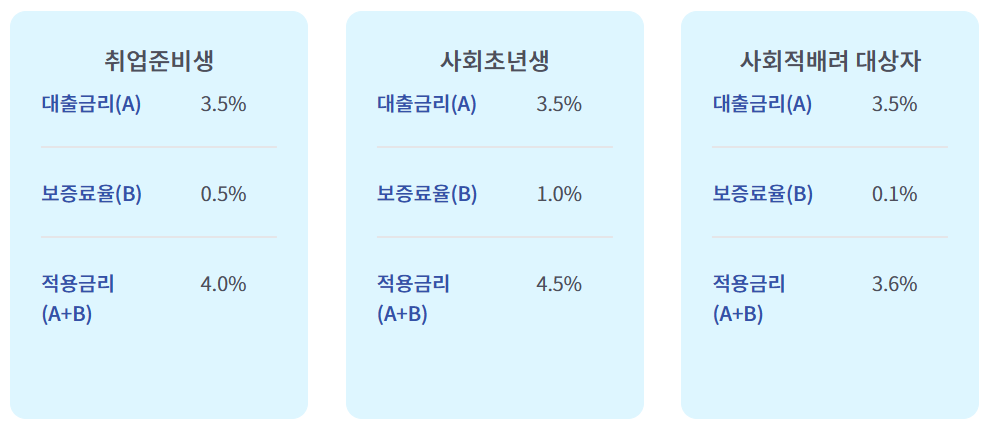 3. 햇살론유스 대출금리 및 보증한도
