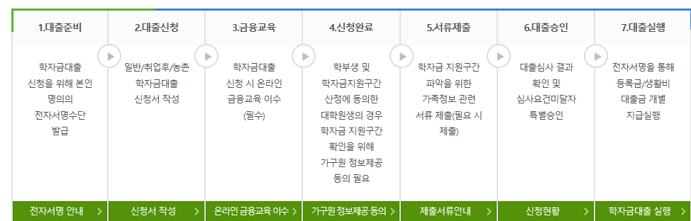2024년 학자금 대출은 아래 7가지의 절차로 진행됩니다.