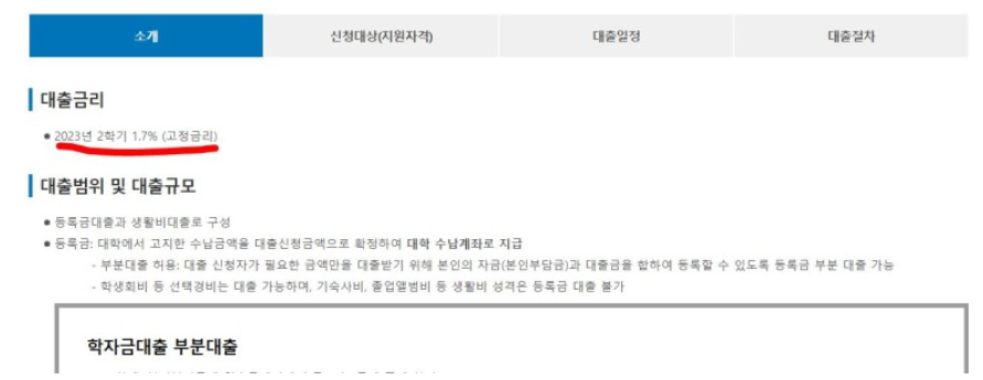- 학자금 대출 저금리 기조 유지: 2023학년도 기준 1.7% (동결)