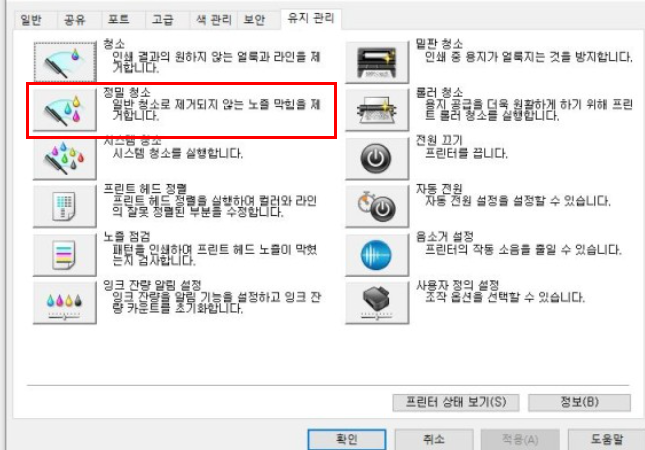 인쇄 품질이 아직 완벽하지 않다면, 정밀 청소를 한번 더 진행 합니다.