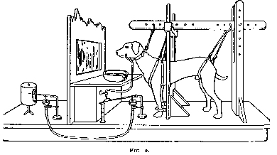 개는 음식을 보면 침을 흘립니다. 음식은 무조건 자극(US)이며, 침을 흘리는 반응은 무조건 반응(UR)입니다. 종소리는 어떤 반응도 일으키지 않는 중성 자극(NS) 입니다.