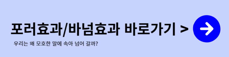 왜 우리는 모호한 말에 자꾸 속아 넘어 갈까요?? 그이유에 대해서 궁금하시다면 포러효과/바넘효과에 대해서 알아보시면 됩니다.