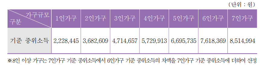 기초생활수급의 소득 기준은 가구의 소득이 기준 중위소득의 일정 비율 이하일 때 충족됩니다. 2024년 기준은 다음과 같습니다: